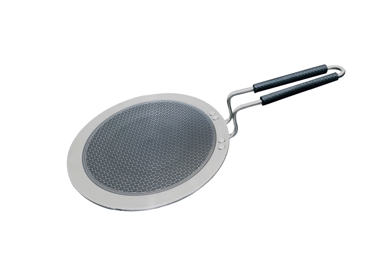 The Aphley Stainless Steel Honeycomb Tawa ensures even heat distribution for perfect cooking every time. Its honeycomb surface protects against scratches, while the ergonomic stay-cool handle provides safety and comfort. Compatible with gas and induction stovetops, it’s ideal for rotis, parathas, dosas, and pancakes.