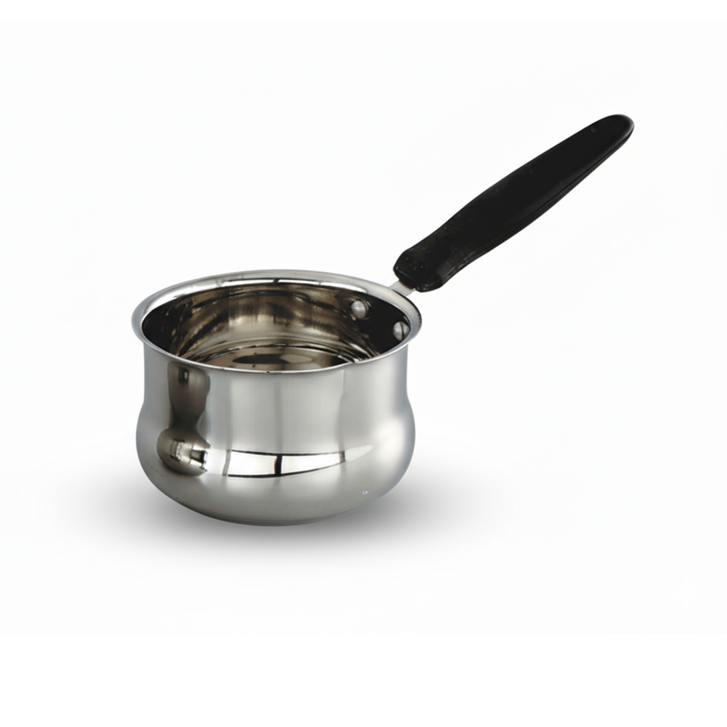 The black holder provides a comfortable grip, allowing you to move or serve the warmer safely without burning your hands. Its sleek design and polished finish make it a stylish addition to any kitchen, dining table, or café setup.